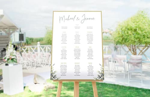 Table plans, strategically displayed, orchestrate the intricate dance of seating arrangements. Transitioning from the entrance to the reception area, these plans offer a visual guide for guests. Meticulously designed, they contribute to the flow of the event, ensuring that each guest finds their place effortlessly.