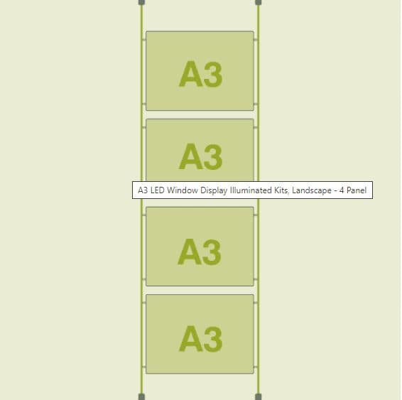 A3 Landscape LED Cable Pocket – 4 Panel are supplied with ceiling/floor connectors, cable and power supply.
